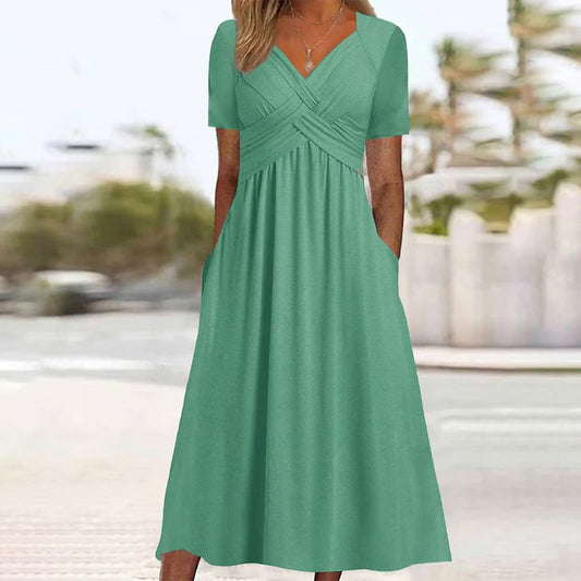 🔥Крайносезонна промоция🔥 【S-3XL】Ежедневна модна рокля със средна дължина в чист цвят