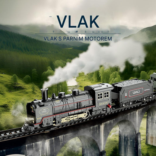 🚂【1 lokomotiva + 5 vagónů + 19 kolejí】🔥Elektrický retro vlak se simulací parního vlaku-3858115