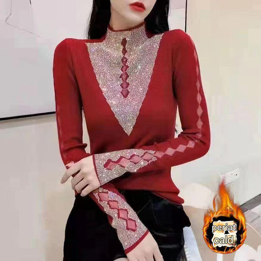 🔥【Časově omezená 60% sleva】🌟【SIZE:M-2XL(40-90kg)】💎🔴⚫Nové zimní tričko s kamínky na vrchu-3877704