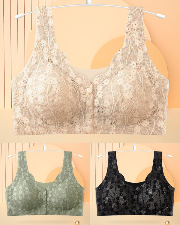 【3 части】【40-100 кг】Дамски безжичен дантелен сутиен с предно затваряне