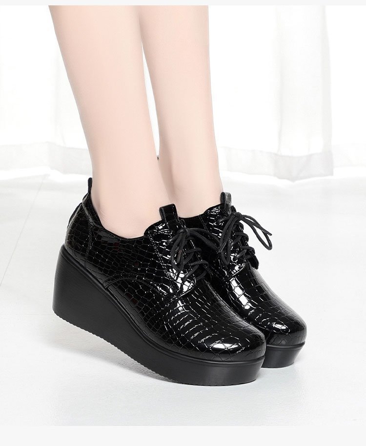 🏆【Horúci výpredaj】Dámske kožené topánky na platforme s plochým podpätkom, ktoré zvyšujú výšku topánky