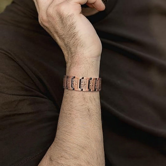 ✨Compre 1 y llévese 1 gratis 💪 Pulsera antigua de cobre rojo con tallado exquisito, pulsera retro y elegante con imán completo en forma de cruz