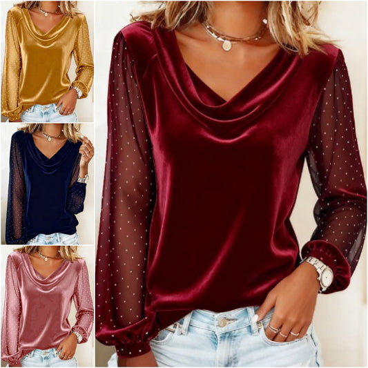 🔥Camiseta de mujer de manga larga con cuello en V 2026 confeccionada en nuevo tejido de malla del año
