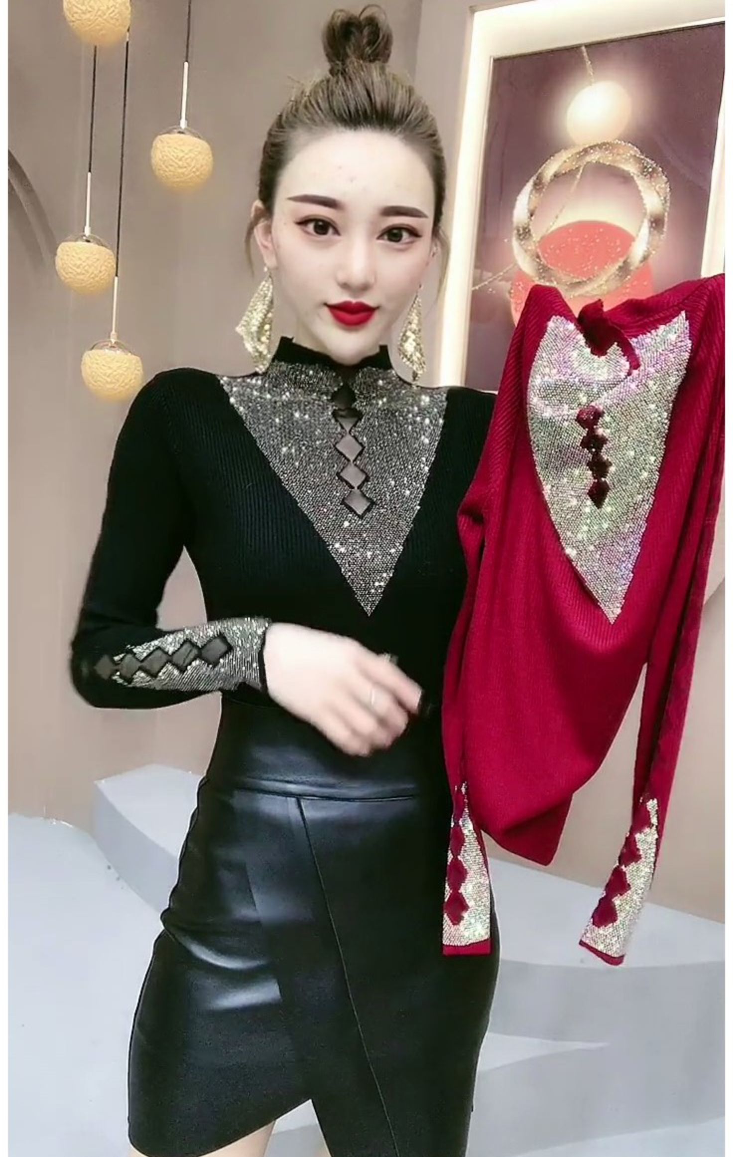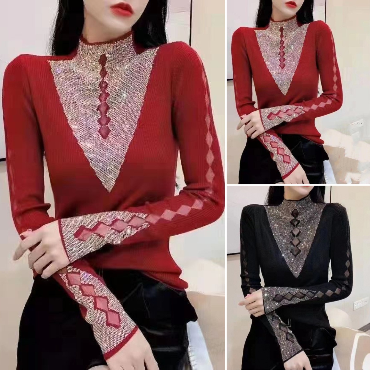 🔥【Časově omezená 60% sleva】🌟【SIZE:M-2XL(40-90kg)】💎🔴⚫Nové zimní tričko s kamínky na vrchu-3877704