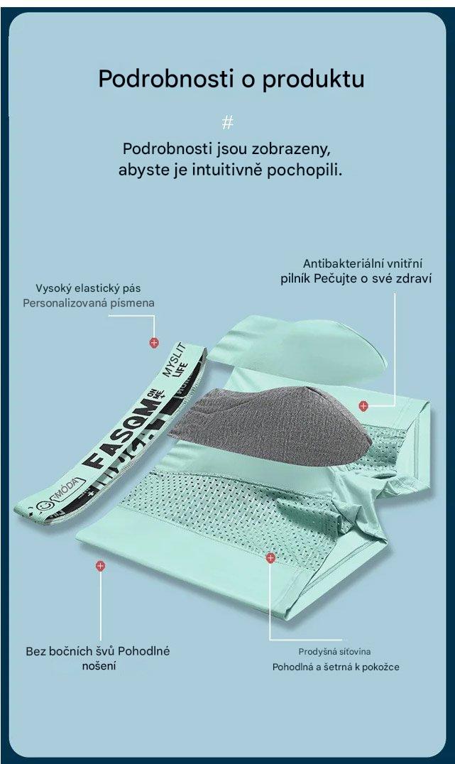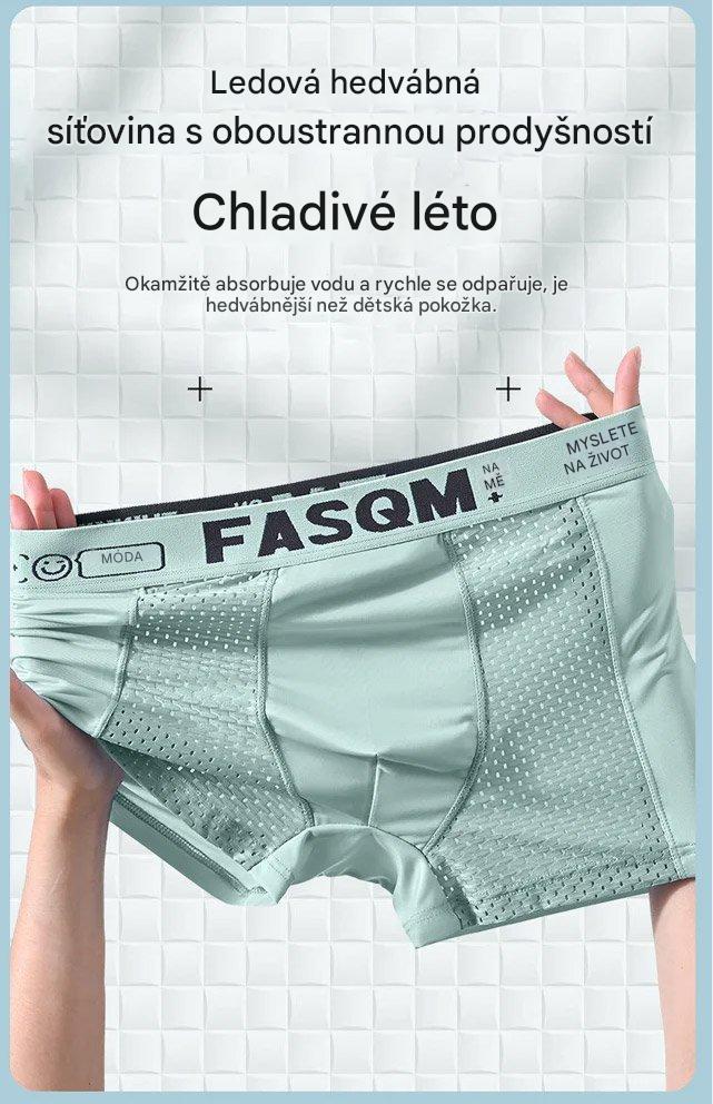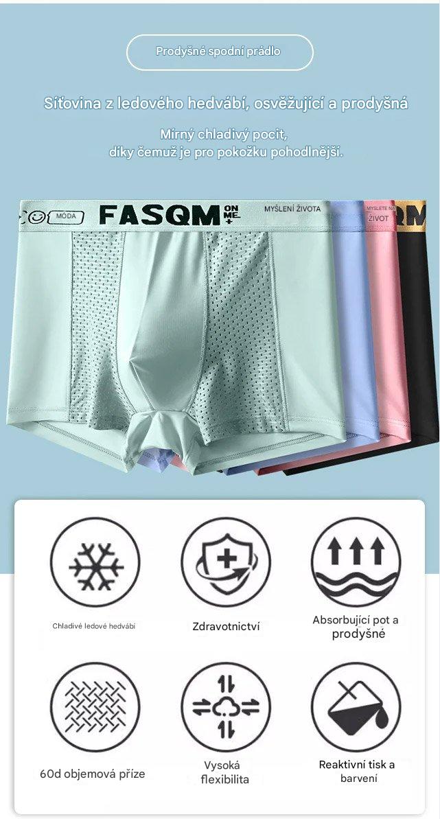 🔵【6 kusů/12kusů】Nový styl, pohodlné a prodyšné, síťované, ledové hedvábné boxerky velké velikosti