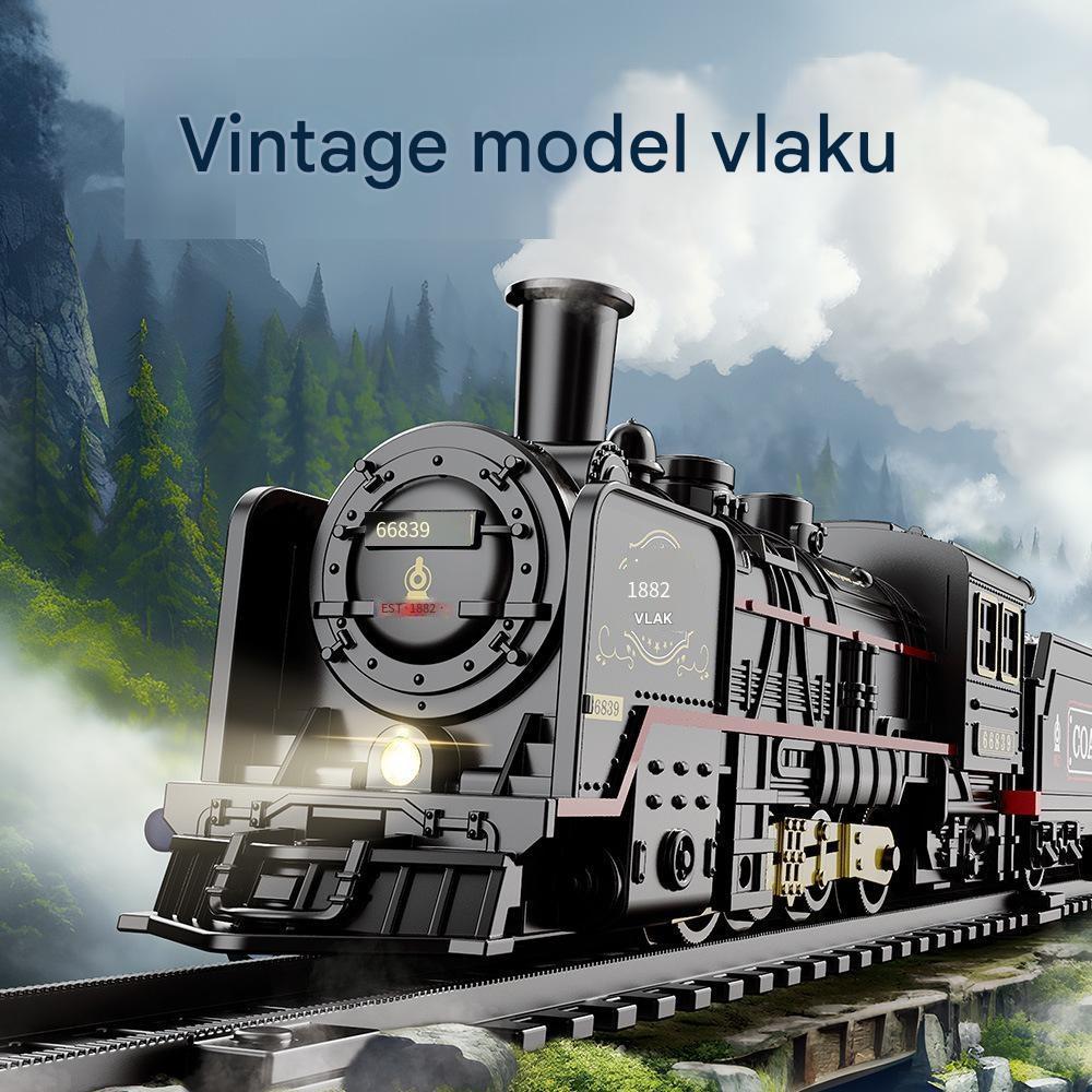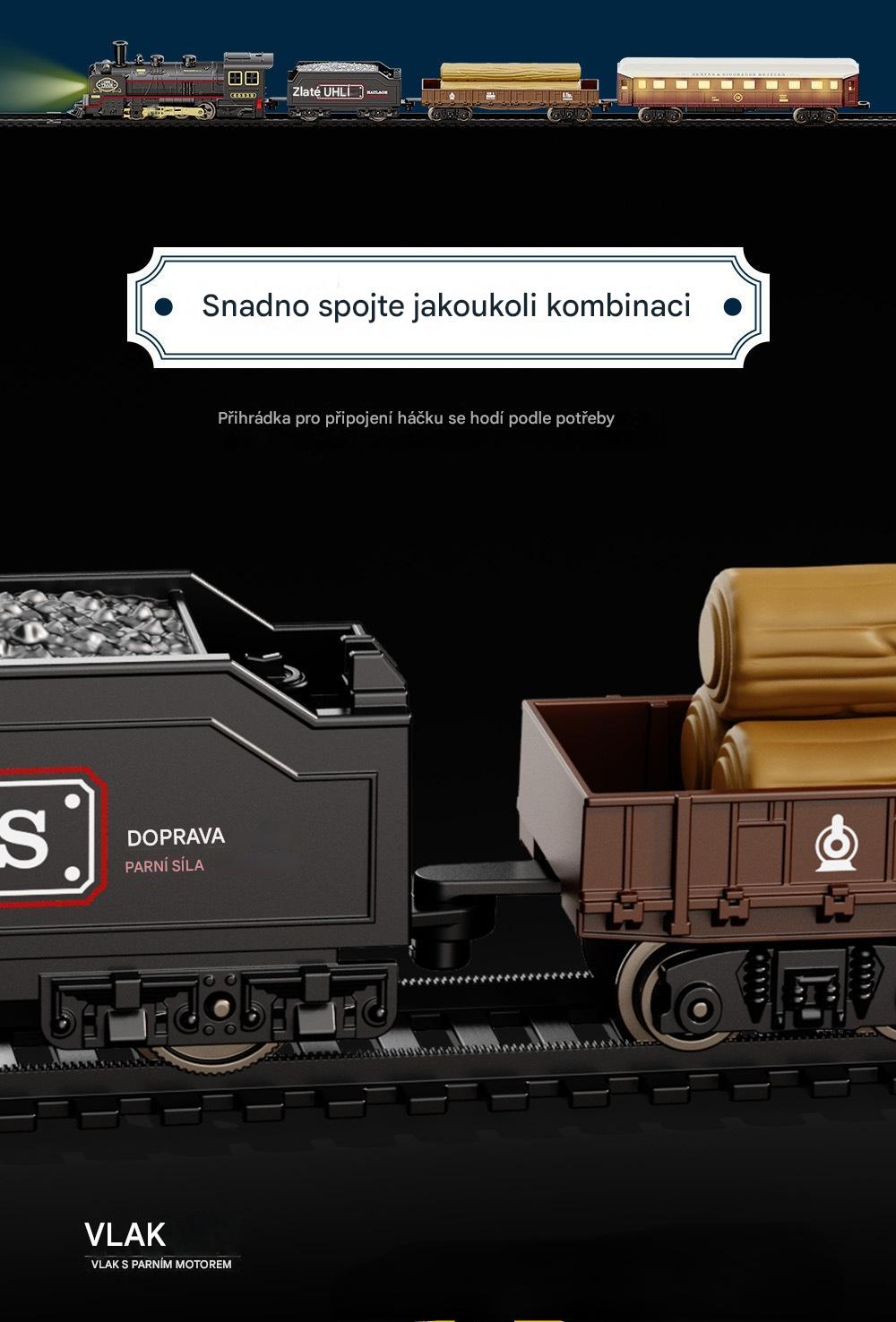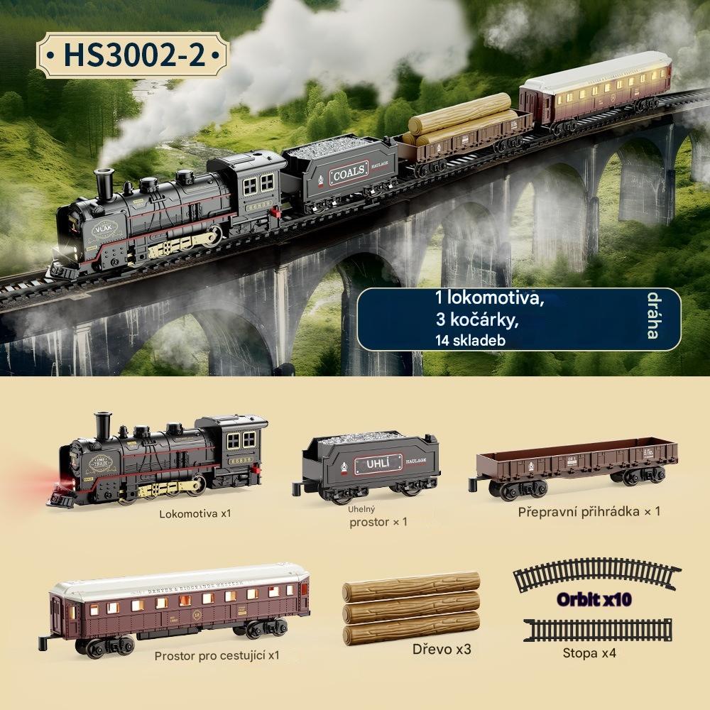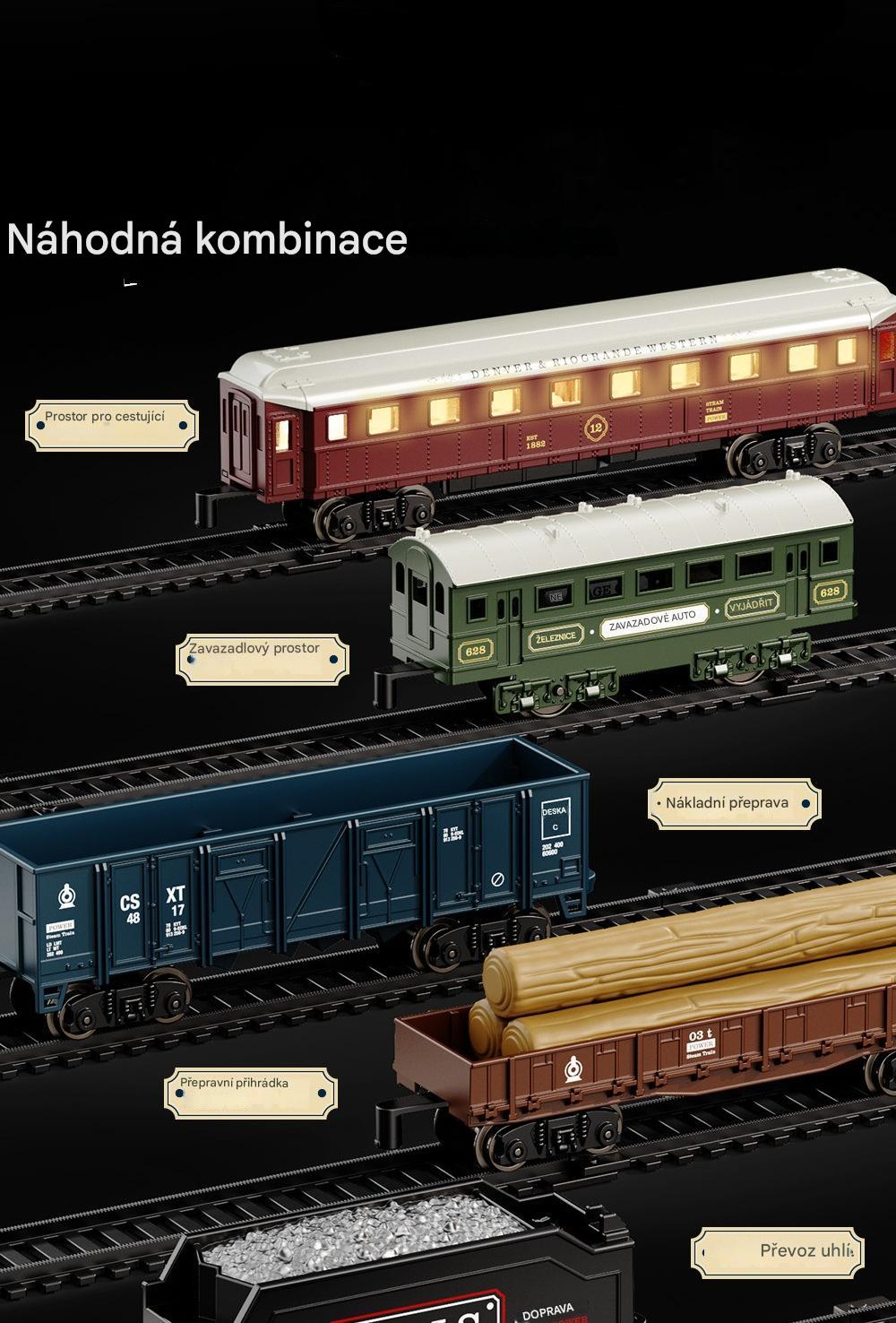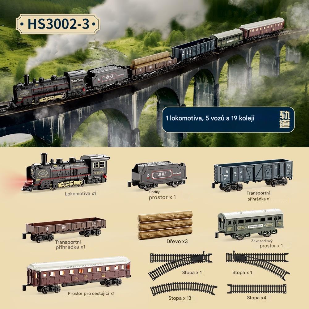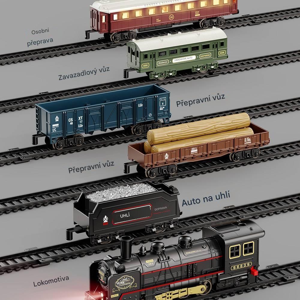 🚂【1 lokomotiva + 5 vagónů + 19 kolejí】🔥Elektrický retro vlak se simulací parního vlaku-3858115