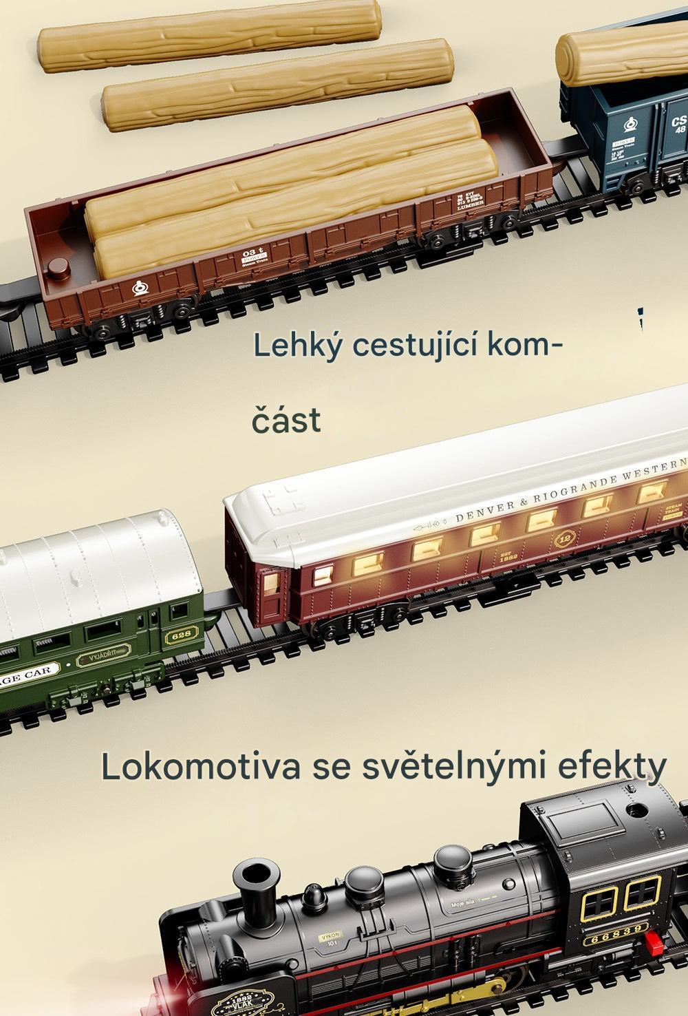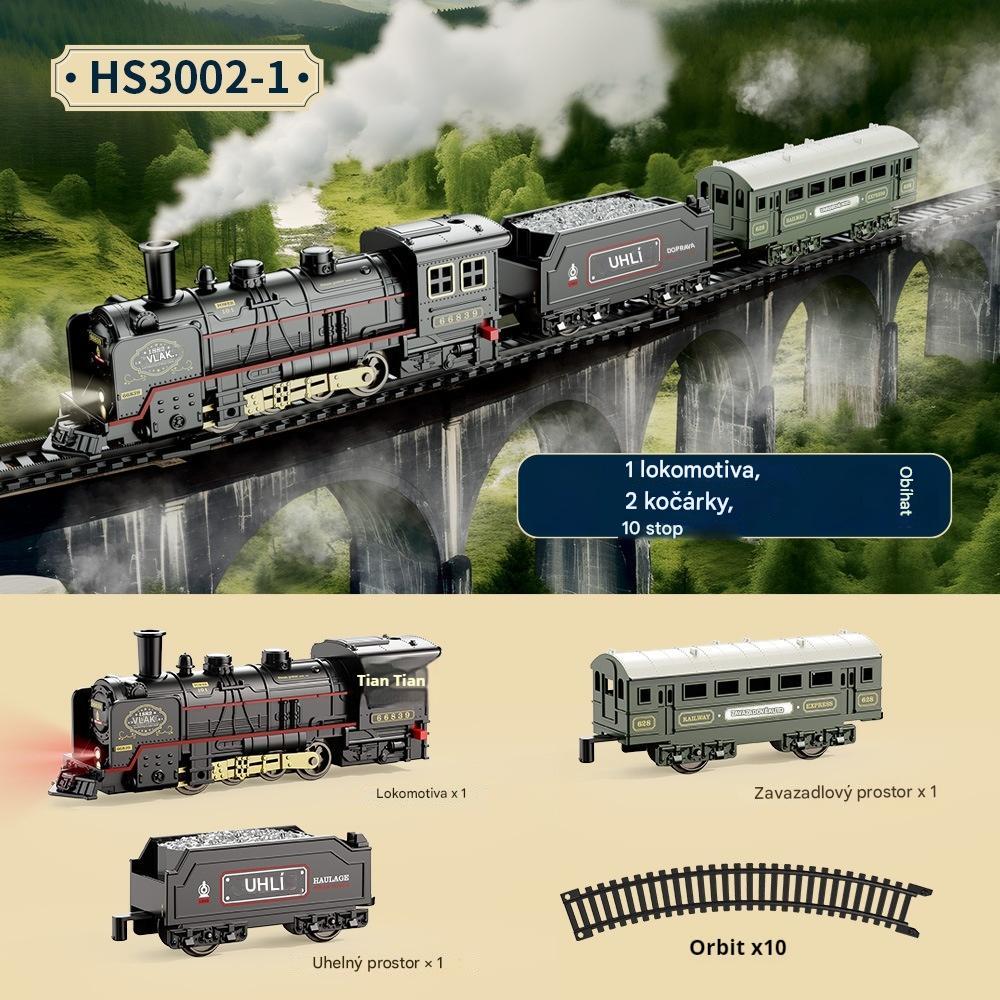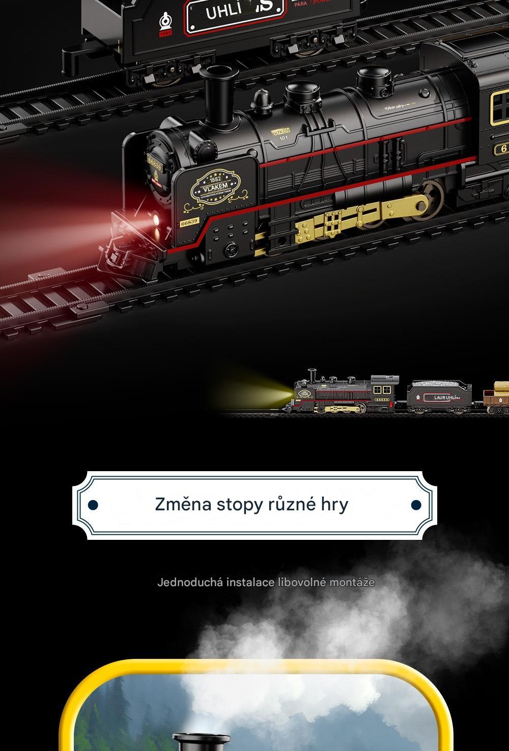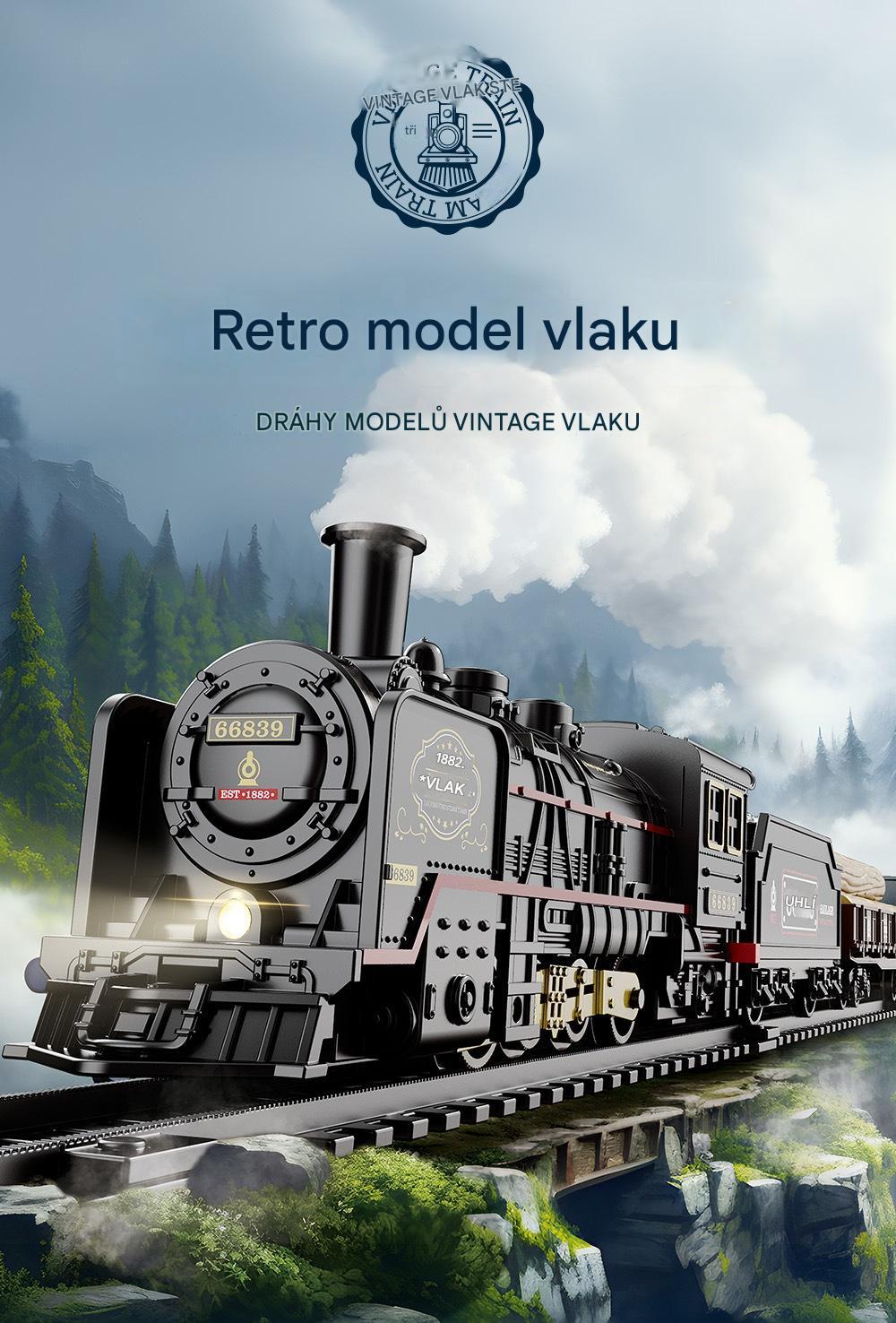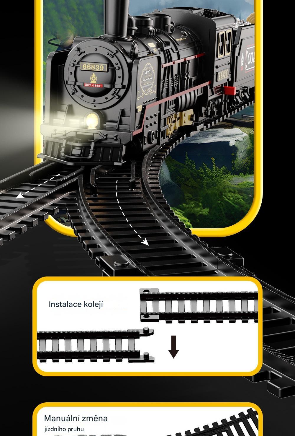 🚂【1 lokomotiva + 5 vagónů + 19 kolejí】🔥Elektrický retro vlak se simulací parního vlaku-3858115