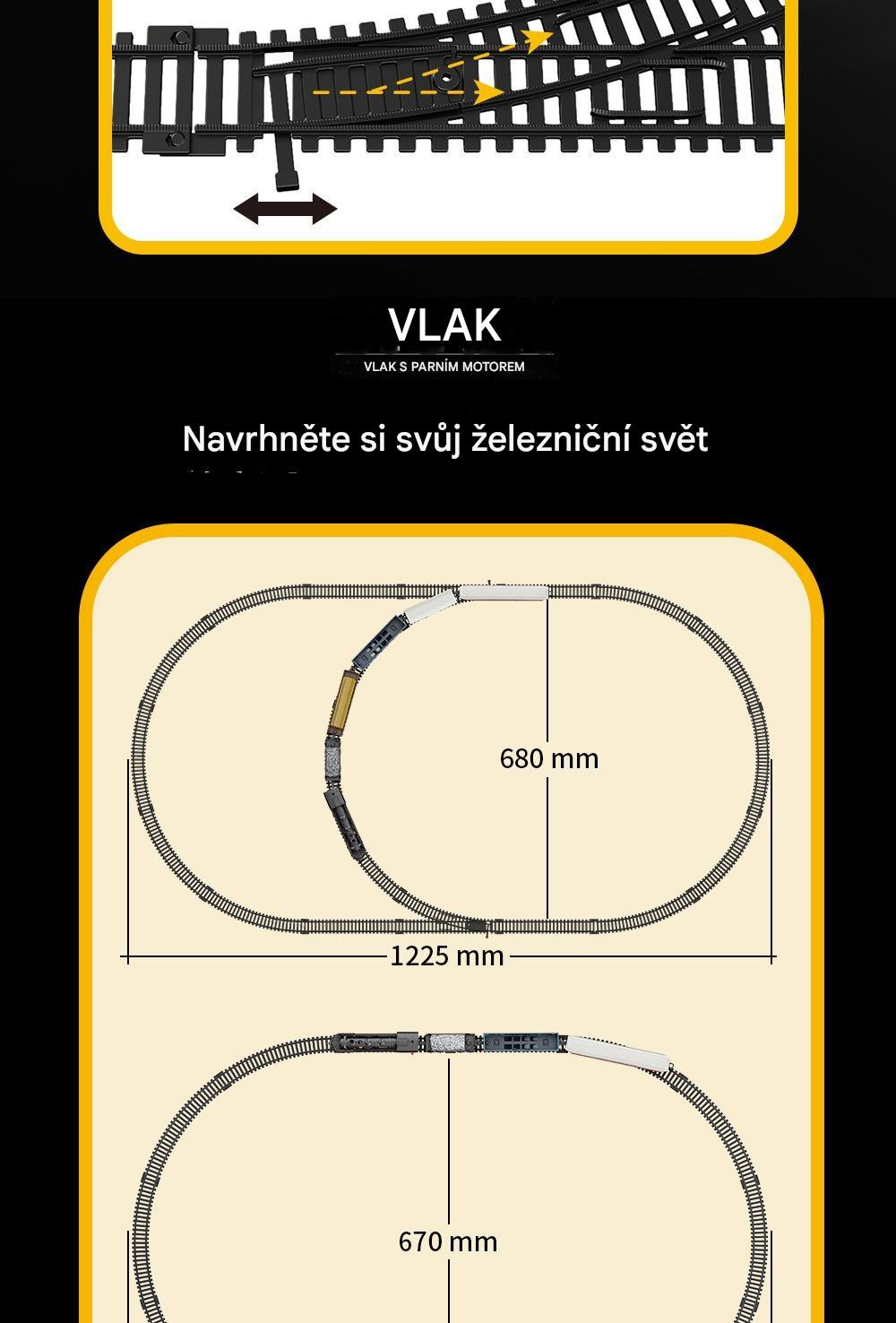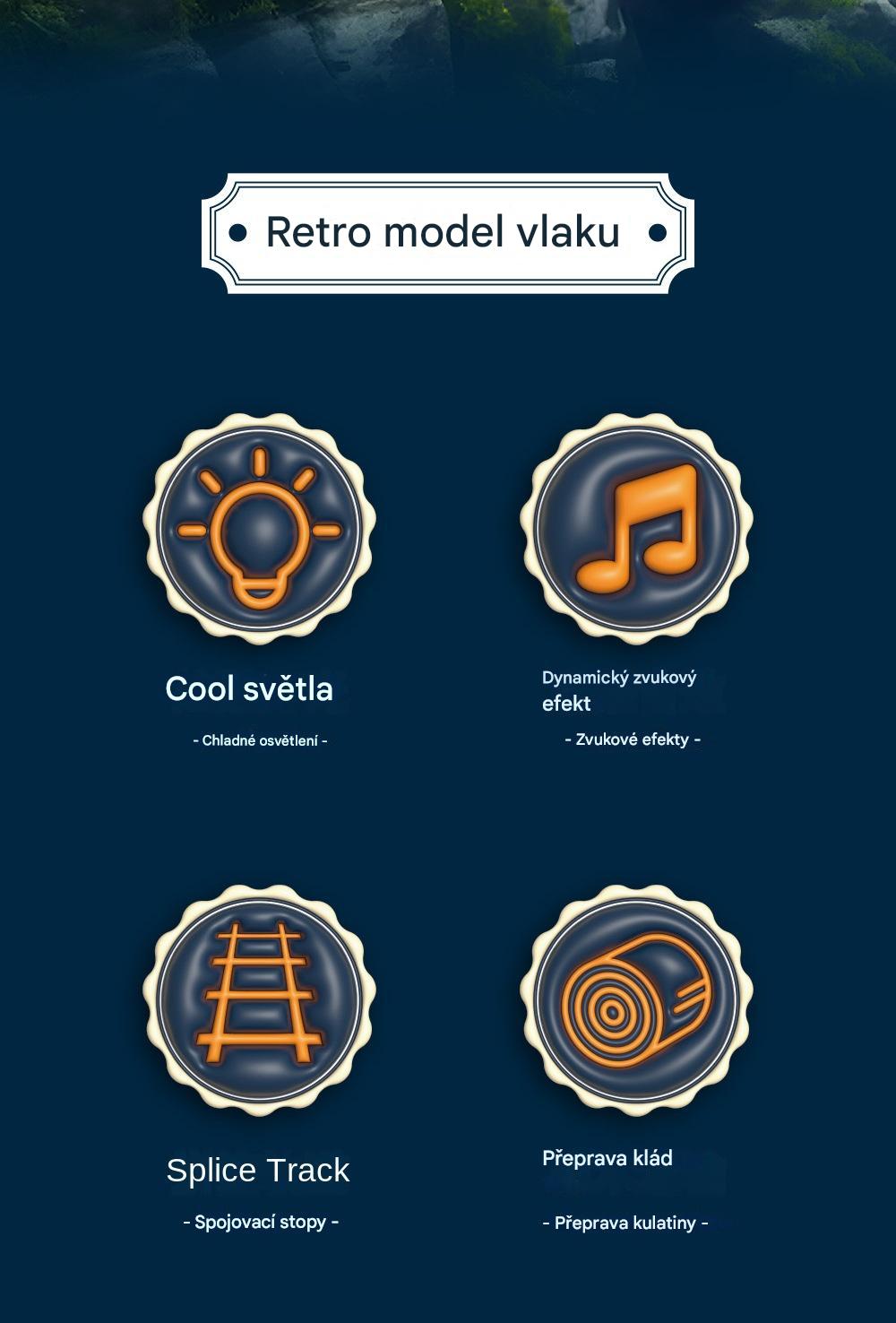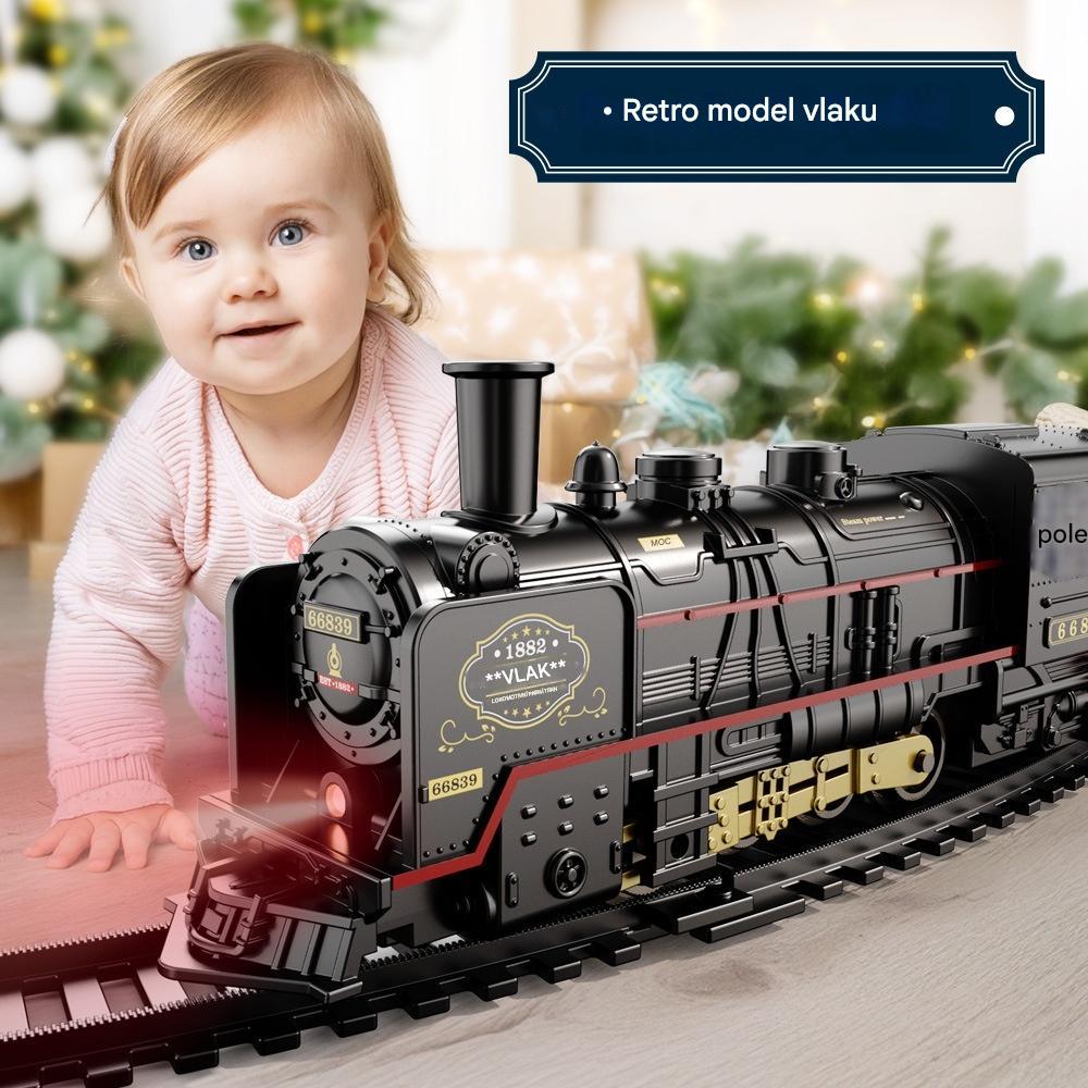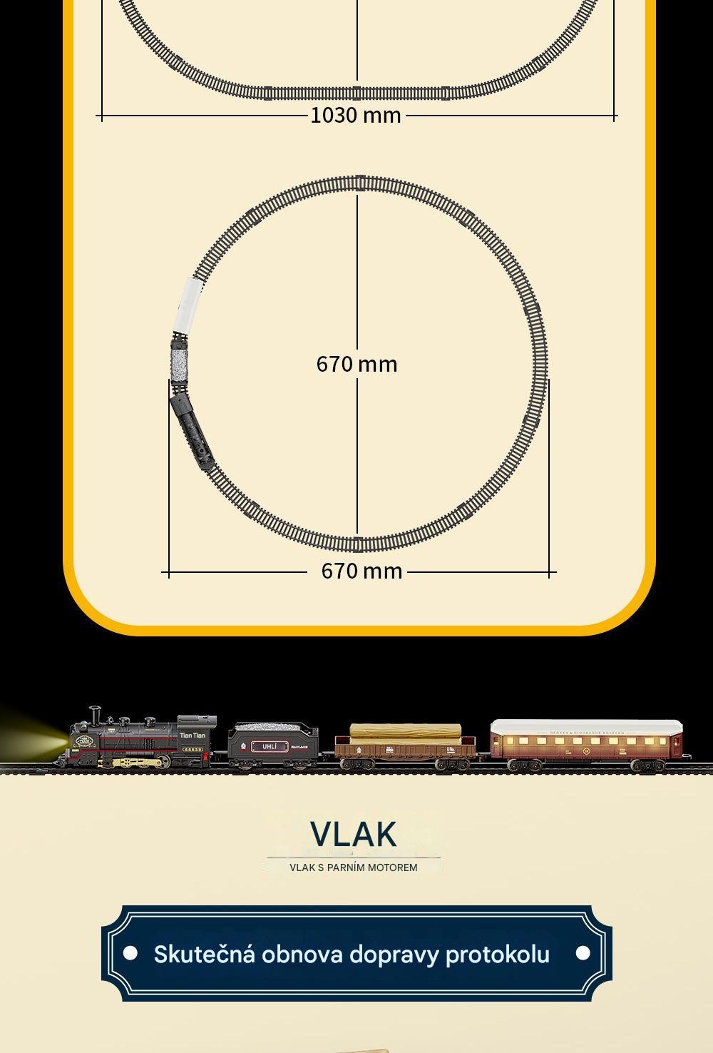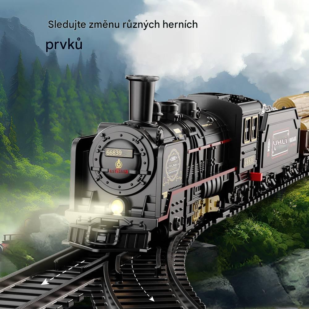 🚂【1 lokomotiva + 5 vagónů + 19 kolejí】🔥Elektrický retro vlak se simulací parního vlaku-3858115