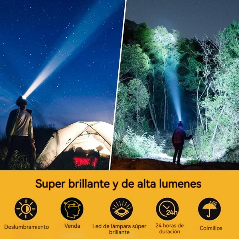 【50% de descuento】【70W】Linterna frontal recargable de alta potencia y muy brillante