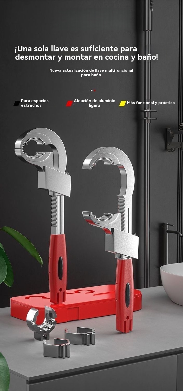 Llave ajustable para baño de aleación de aluminio multifuncional, llave para manguera de grifo y llave para fregadero.